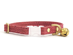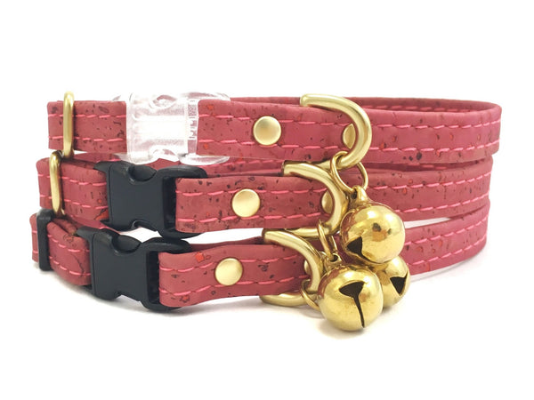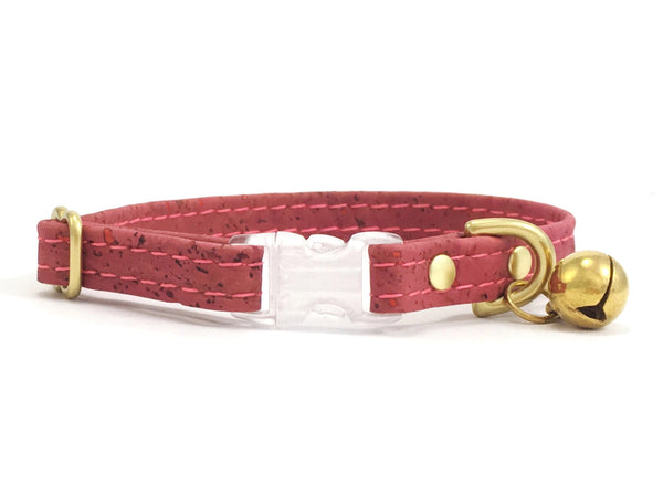 Pink Vegan Cork Leather Breakaway Safety Cat Collar With Bell - Brass