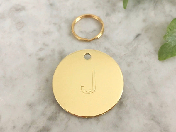 Cat ID tag with initial in luxury solid brass, engraved in the UK