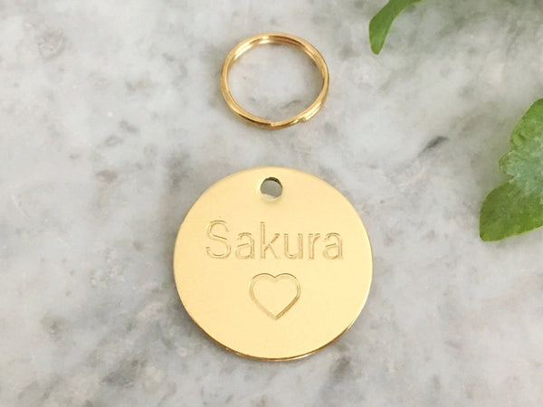 Luxury Cat ID Tag in Solid Brass with Heart and Personalised Engraving