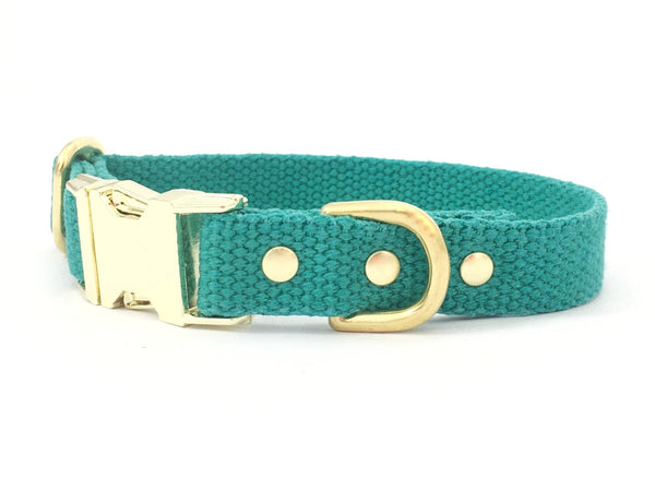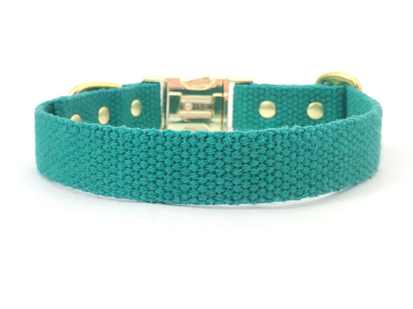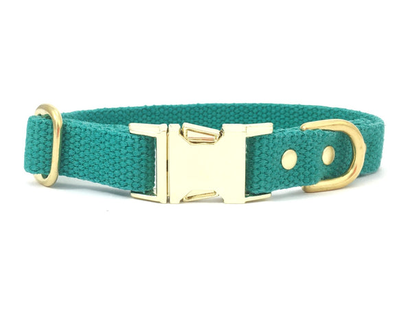 Emerald Green Cotton Dog Collar With Brass Buckle