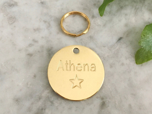 Luxury Cat ID Tag in Solid Brass with Star and Personalised Engraving