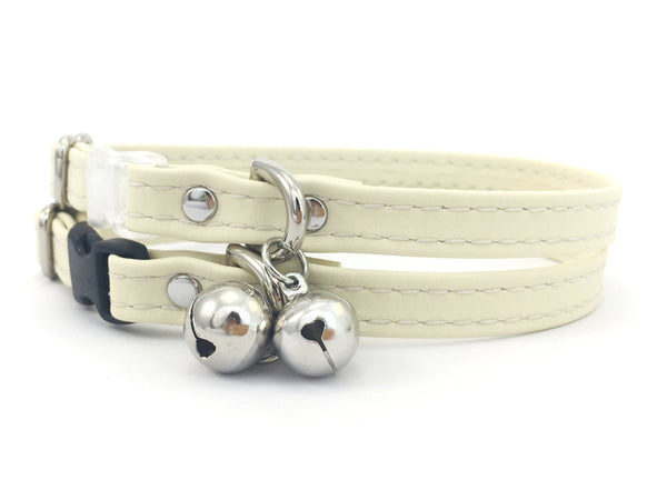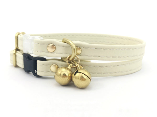 White Vegan Silicone Leather Breakaway Safety Cat Collar With Bell - Brass & Silver